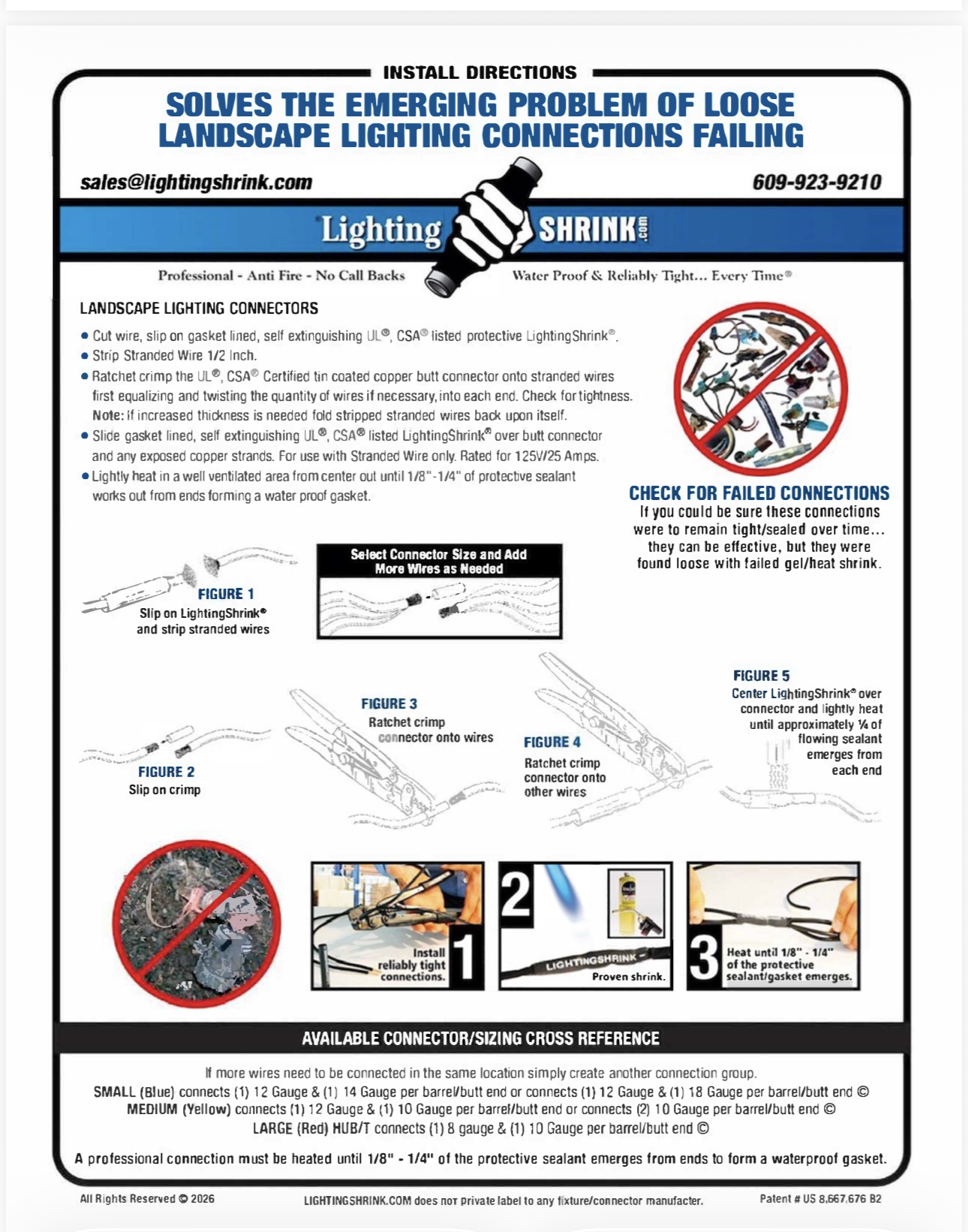 Using LightingShrink Anti-Fire Lighting Connections and its Process-Patented System with the Field-Tested LightingShrink-Ratcheting Crimping Tool and Proven Heat Shrink solves the emerging problem of burning lighting connections with fast, consistent and permanent connections.